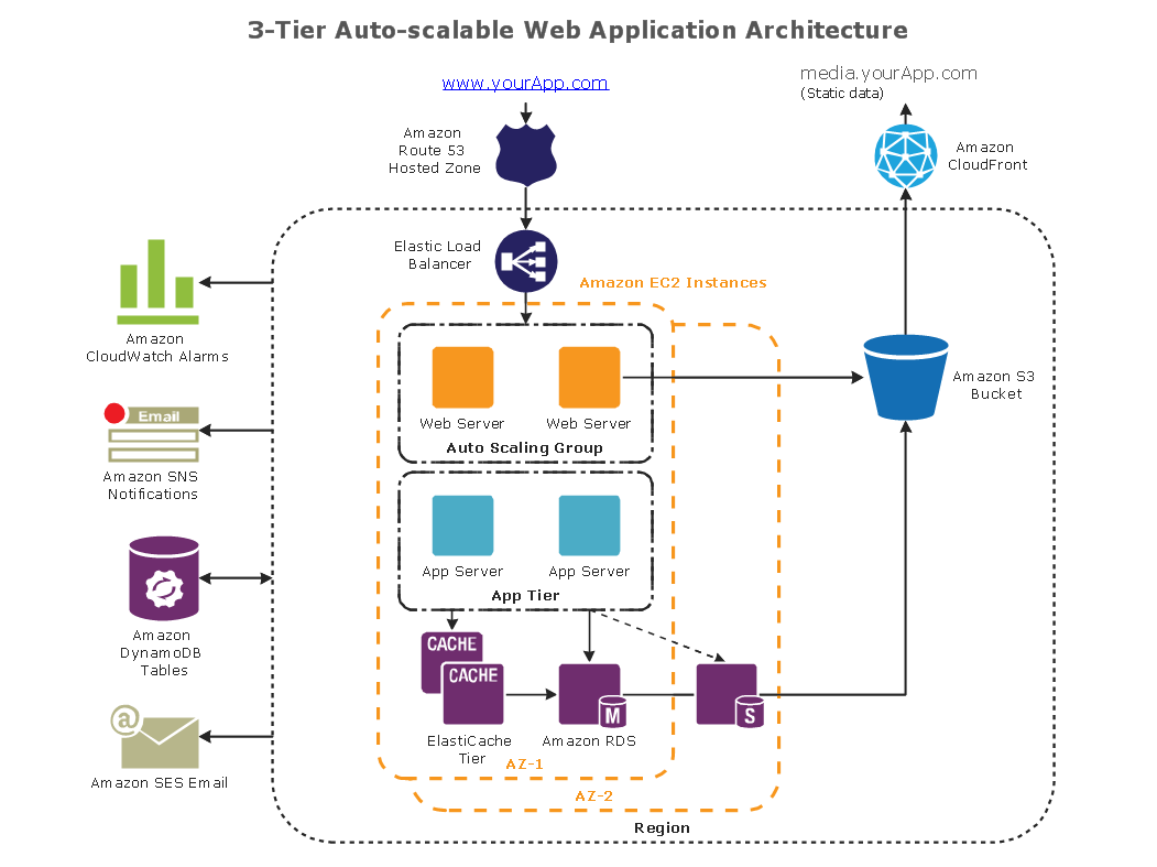 Web Application Aws Architecture Diagram / How to Draw AWS Architecture Diagram Online - YouTube - Quick aws architecture learning guide that explains what amazon web service.. Quick aws architecture learning guide that explains what amazon web service. About architecting, building and running applications on aws technology. The aws architecture diagrams solution includes icons, sample and templates for several amazon web services products and resources, to be used when creating . This is the basic structure of aws ec2, where ec2 stands for elastic compute cloud. Perform skills in the architectures of the traditional web applications.
